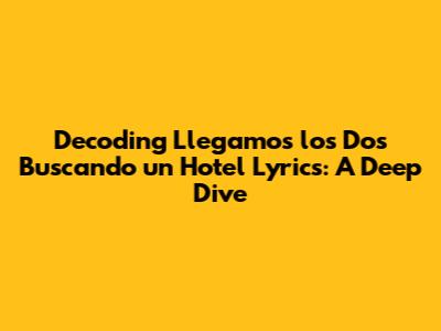 Hey music lovers! Ever gotten a song stuck in your head and just had to know what it meant? Well, today, we're diving deep into the lyrics of "Llegamos los Dos Buscando un Hotel". This catchy tune, often sung with passion, has a narrative that sparks curiosity. We'll explore the core themes, hidden meanings, and overall vibe of this beautiful song. So, grab your headphones, get comfy, and let's decode this musical masterpiece together!