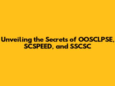 Unveiling The Secrets Of OOSCLPSE, SCSPEED, And SSCSC